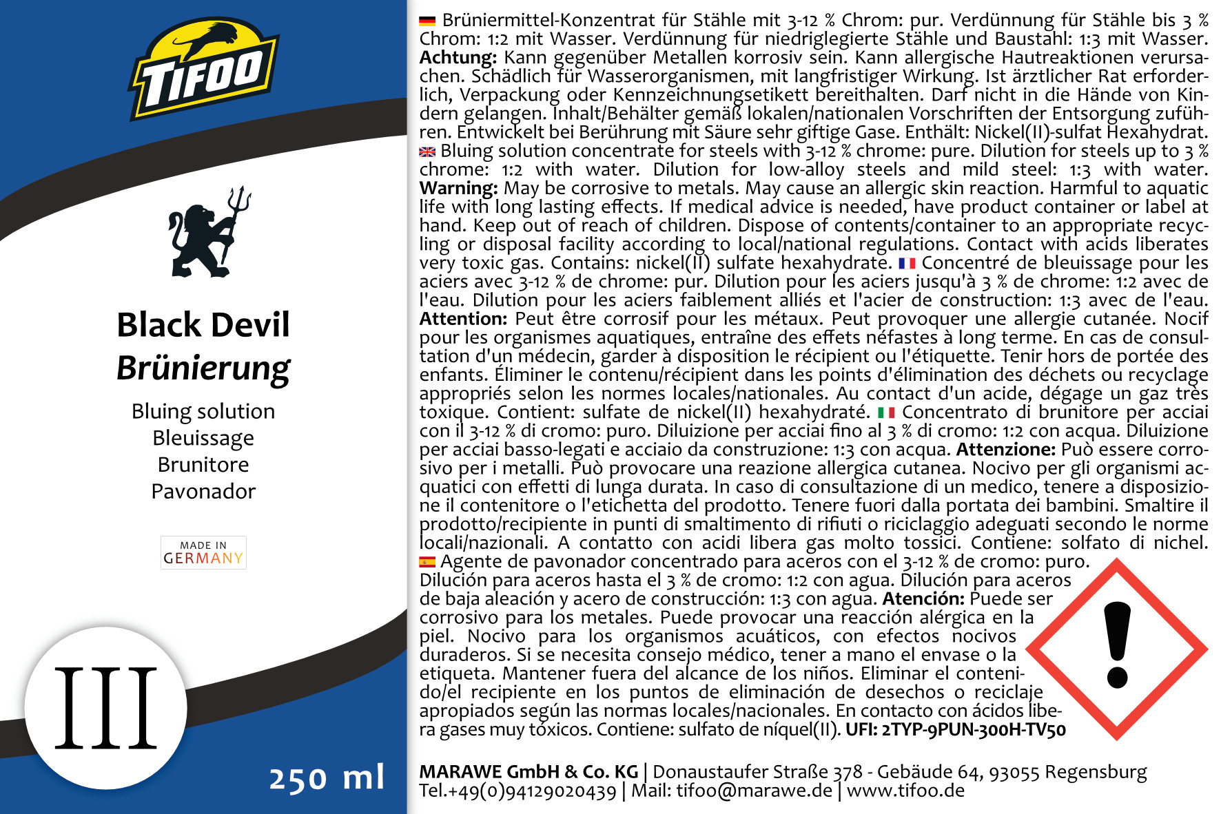 Tifoo Brüniermittel "Black Devil" – die Produkteigenschaften auf einen Blick: