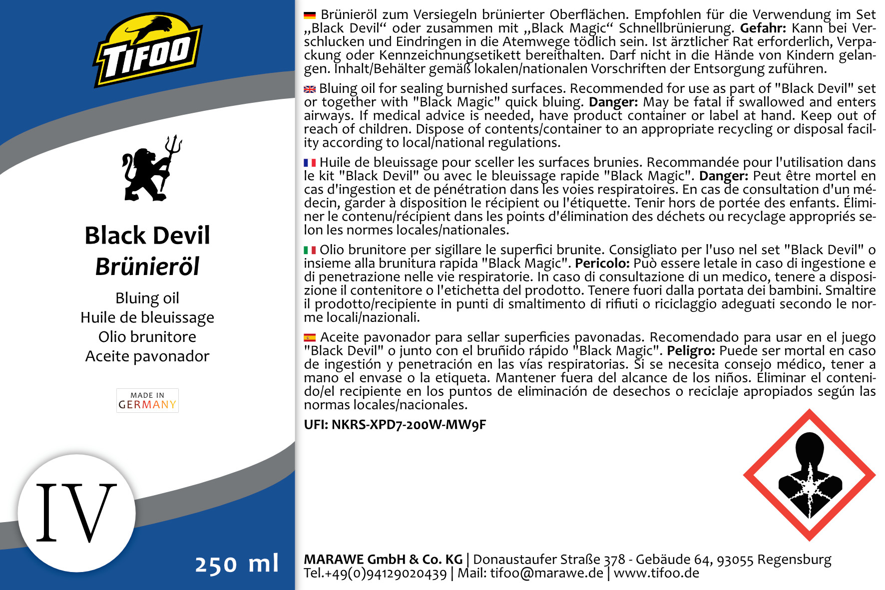 Tifoo Brünieröl "Black Devil" (250 ml) – die Produkteigenschaften auf einen Blick: