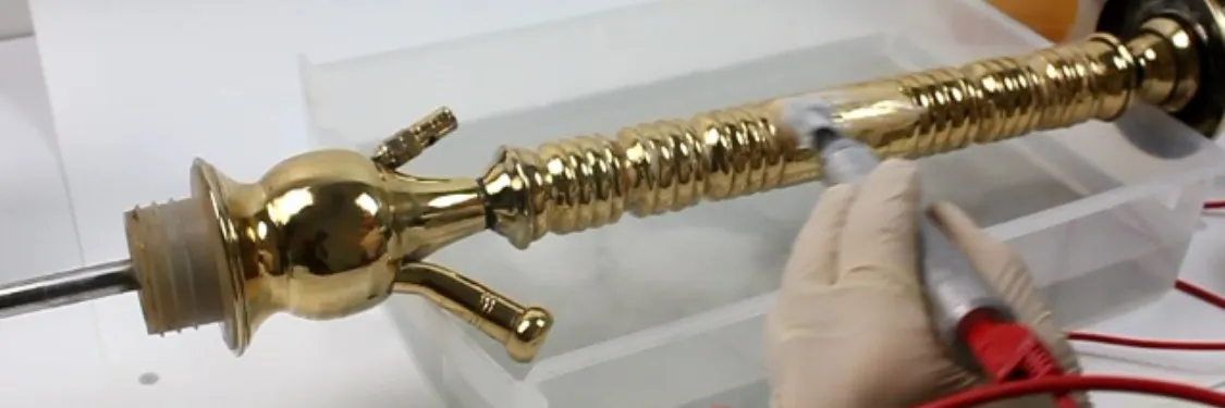 3. Nach dem Galvanik-Prozess und zwischen jedem Verfahrensschritt Objekt nochmals gründlich reinigen, spülen und entfetten. Bei Bedarf lässt sich die Oberfläche am Ende schleifen oder spiegelglatt polieren – das kann auch zwischen verschiedenen Schichten sinnvoll sein, da diese gleichmäßig wachsen und sich Unebenheiten fortsetzen können.
