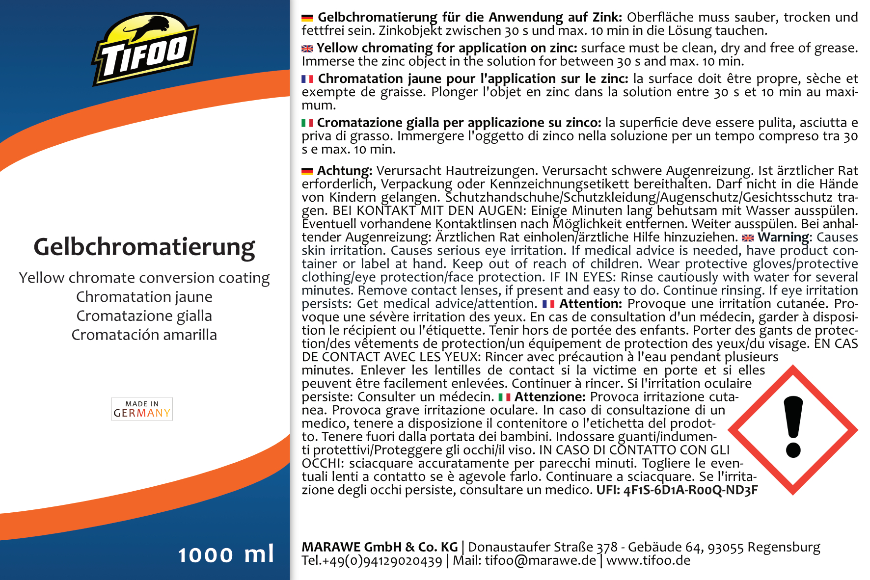 Tifoo Gelbchromatierung (1000 ml) – die Produkteigenschaften auf einen Blick: