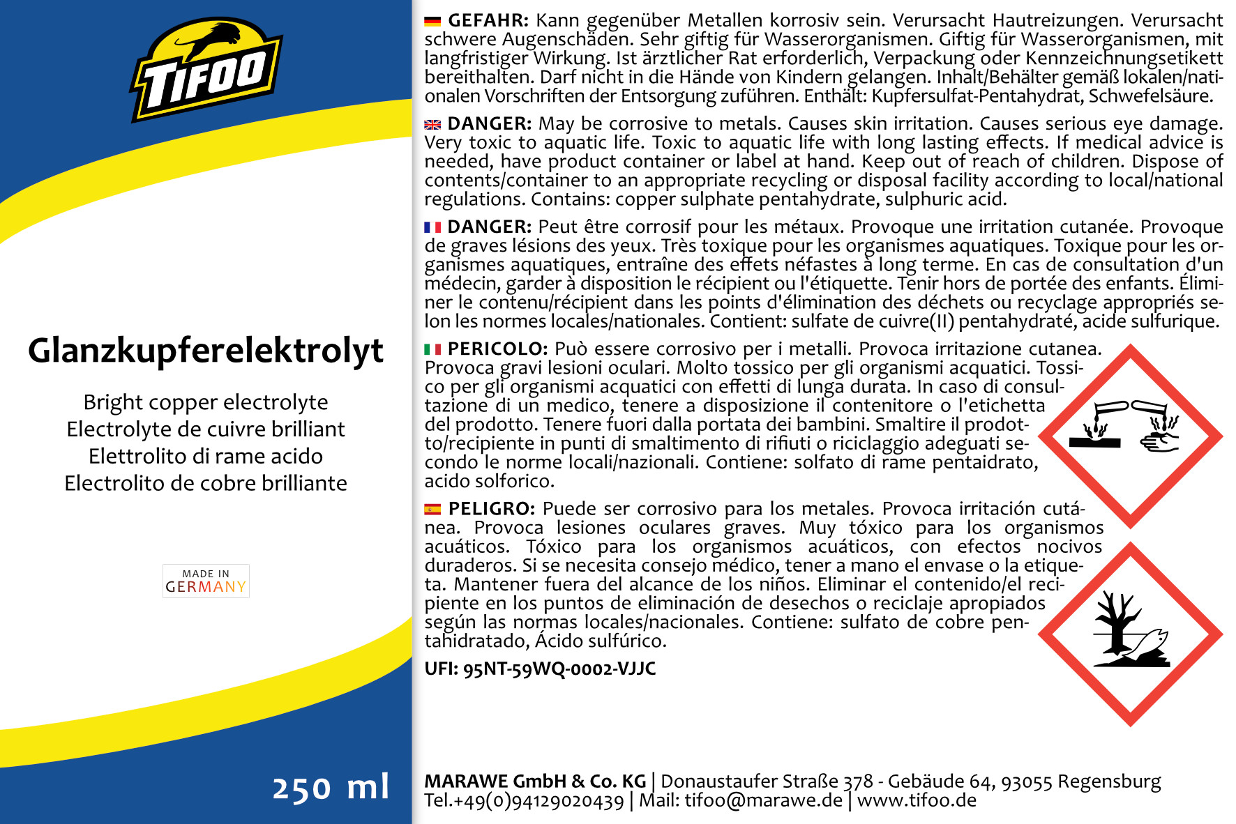 Tifoo Glanzkupferelektrolyt sauer – die Produkteigenschaften auf einen Blick: