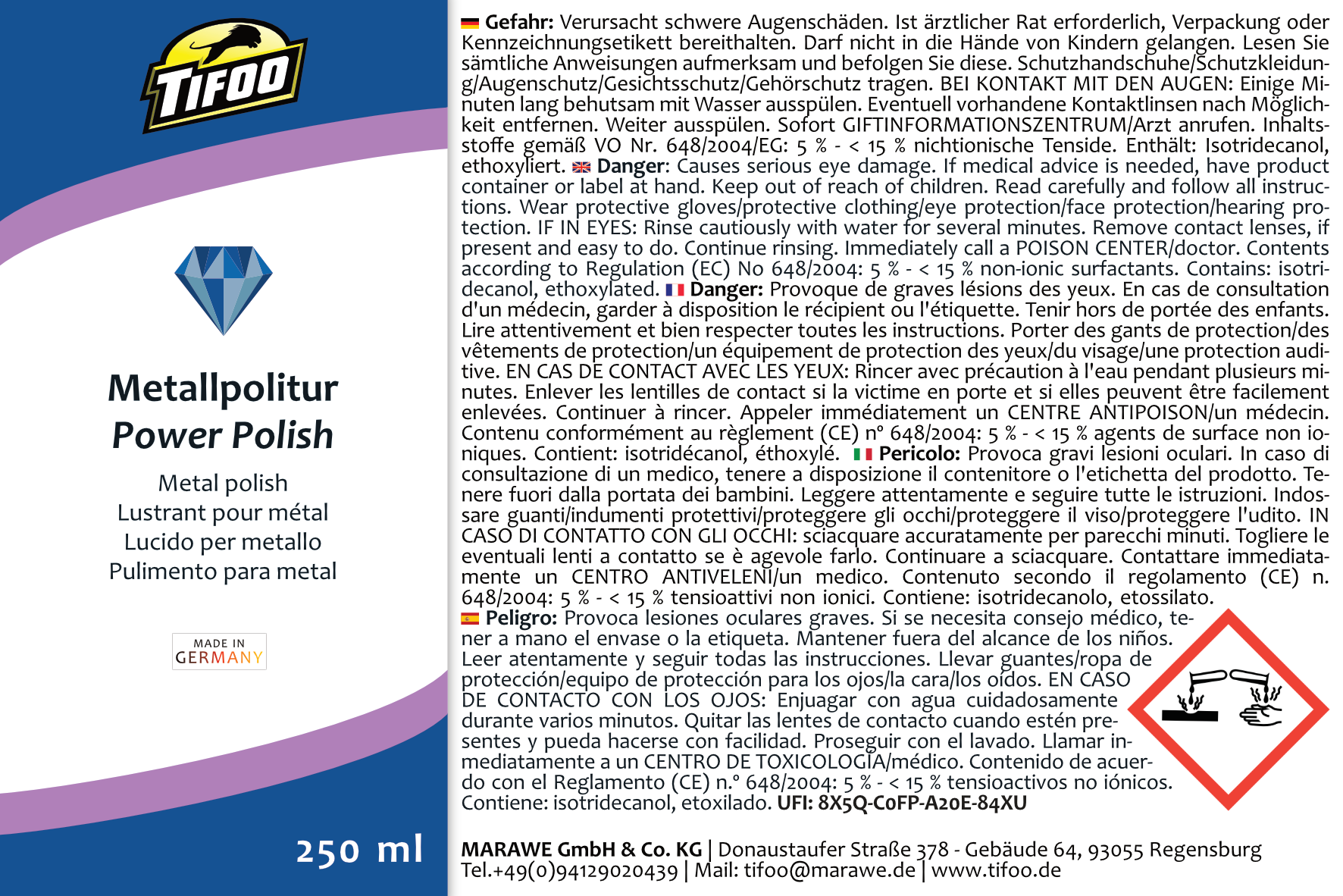 Tifoo Poliermittel "Power Polish" (250 ml) – die Produkteigenschaften auf einen Blick: