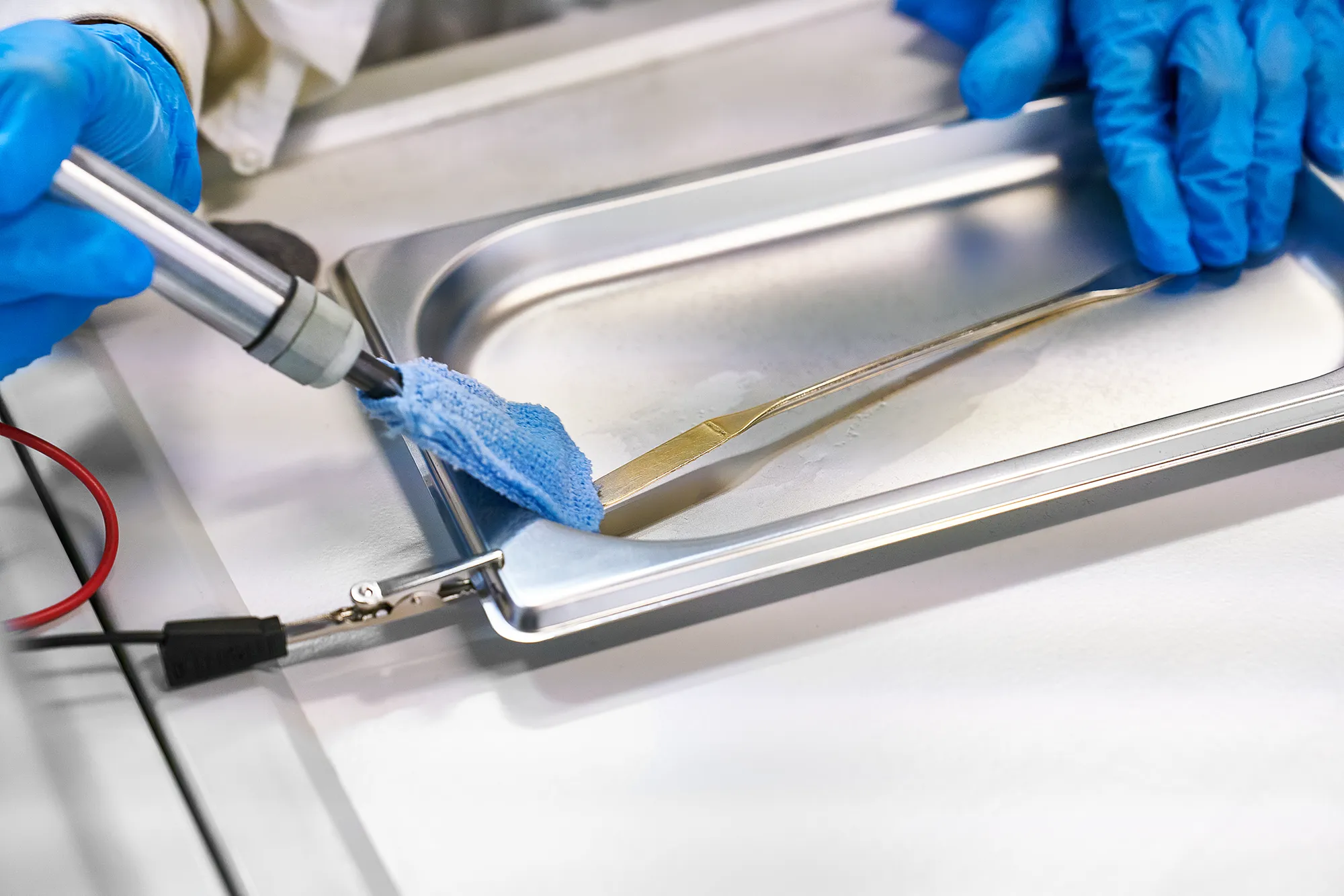 1. Die Vorbehandlung ist für die Qualität des Endergebnisses von großer Bedeutung. Stellen Sie dazu sicher, dass das Schmuckstück vor dem Galvanisieren vollständig fettfrei und sauber ist - nur so werden die Ergebnisse kalkulierbar gut.